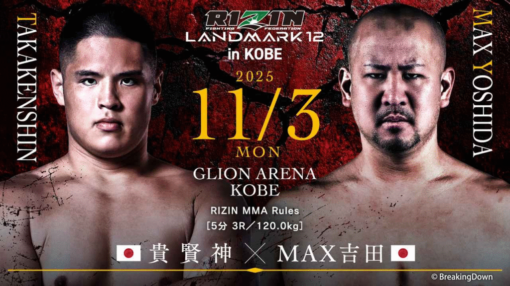 2025年11月3日(月・祝)、GLION ARENA KOBEにて「RIZIN LANDMARK12」が開催されます。
