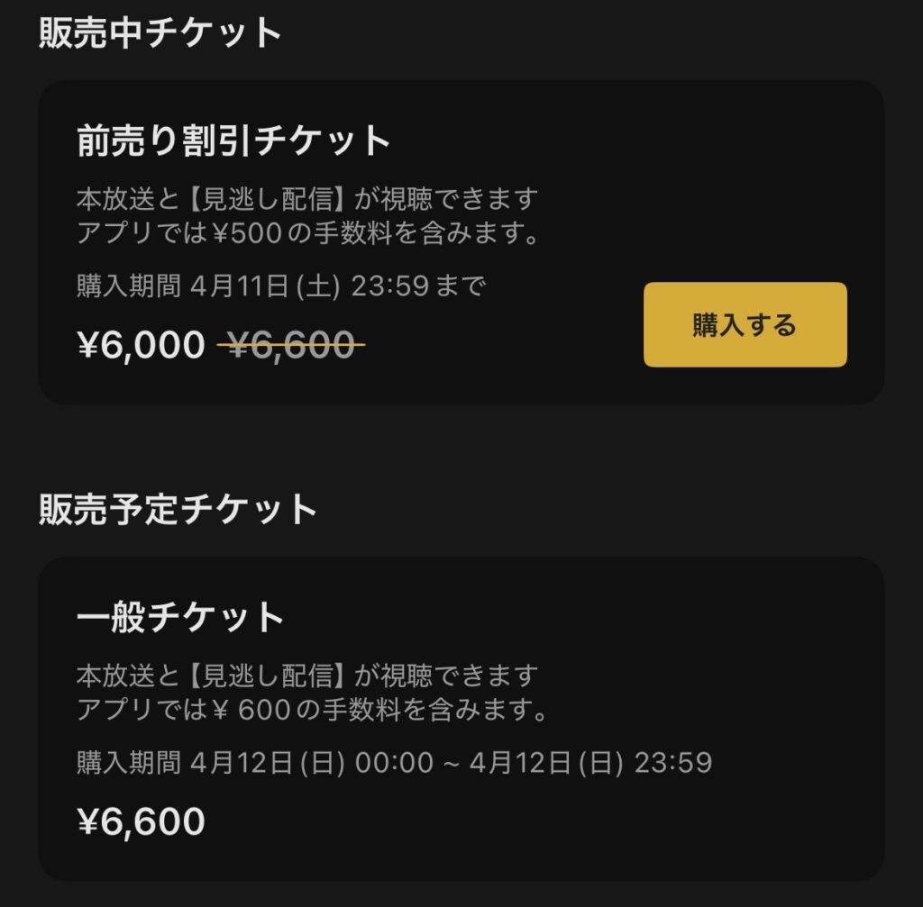 結果下記画像のように前売り6,000円とちょっと高いです。