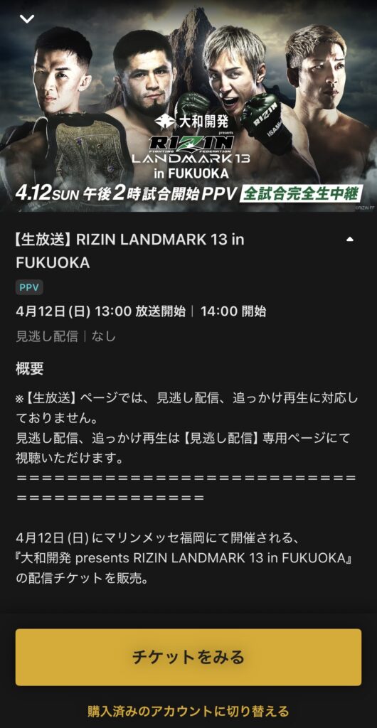 RIZIN LANDMARK.13 PPVチケット購入ページ