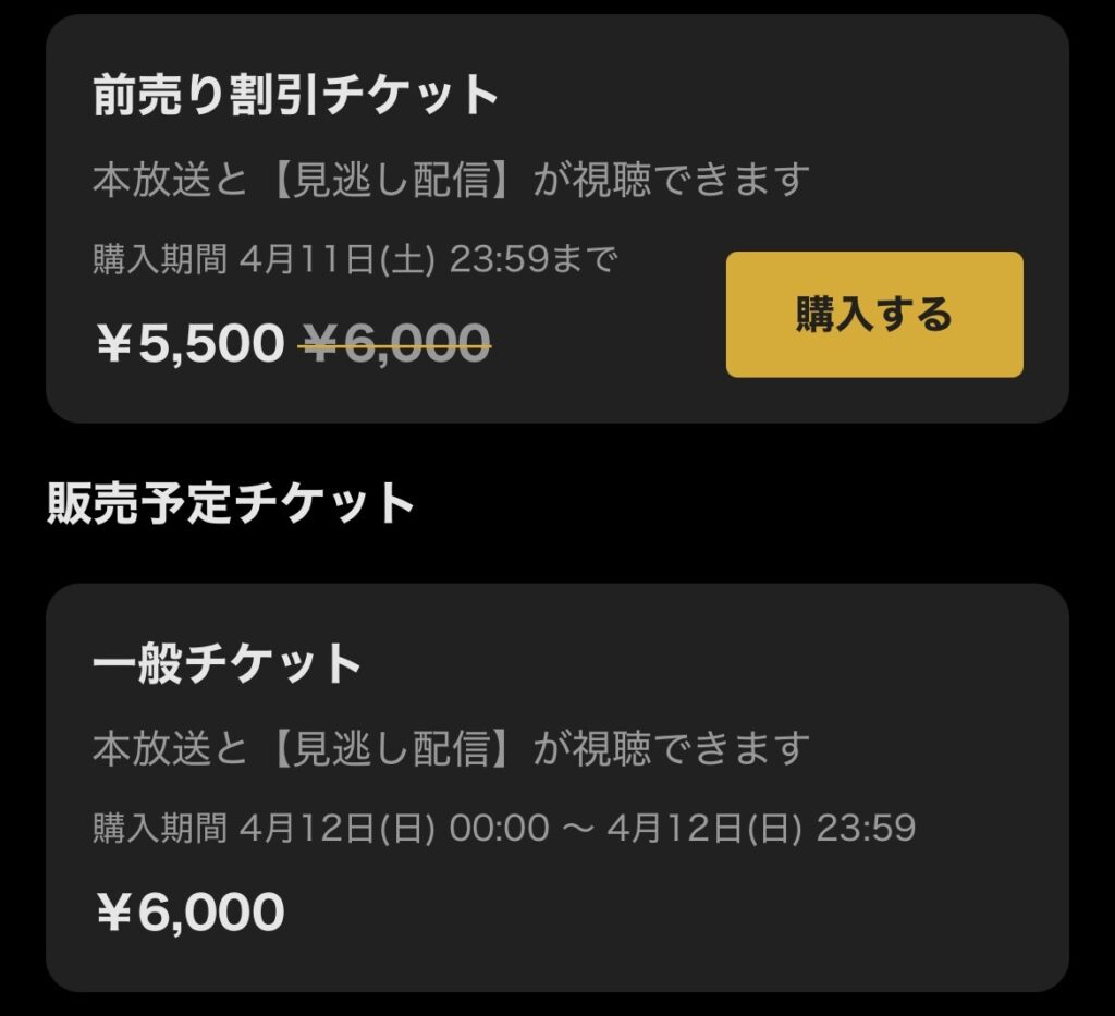 ※前売りは2026年4月11日(土)23:59までのため早めに購入しましょう。